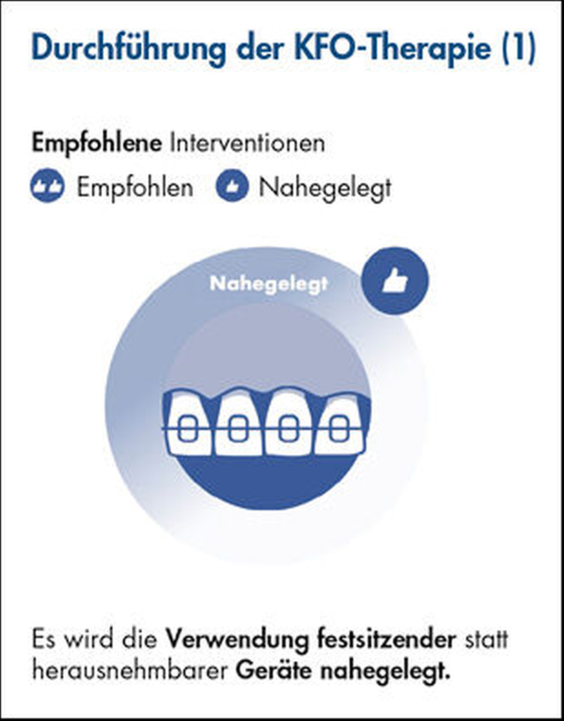 Die Evidenz wurde als moderat eingestuft, da eine relevante Anzahl von Studien übereinstimmende Ergebnisse festgehalten haben, wenn auch mit einem mäßigen bis hohen Risiko der Verzerrung. Aber diese Behandlung wird in Anbetracht der wahrscheinlichen Vorteile (verbesserte Zahnstellung, funktionelle Okklusion und Ästhetik) von den Patienten gut angenommen, obwohl es an Belegen für die von den Patienten berichteten Ergebnisse (PROMs) aus den genannten Studien mangelt.
