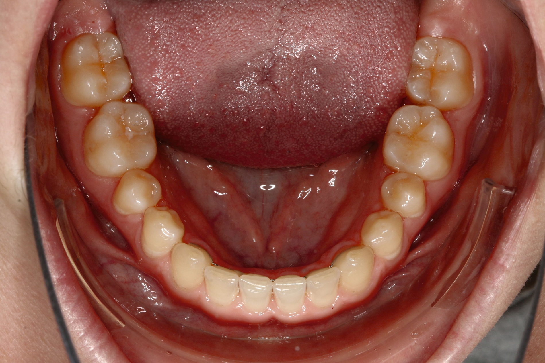 Vor der prothetischen Versorgung sollte zunächst eine kieferorthopädische Behandlung mit einer Ausformung der Zahnbögen mit Beseitigung des tiefen Bisses und regelrechter Einstellung der Zähne 13, 23, 15 und 25 erfolgen. Durch die regelrechte Einstellung der Eckzähne ergibt sich eine Lückenöffnung im Bereich der Nichtanlagen regio 12 und 22. Ein besonderes Augenmerk sollte auf eine symmetrische Einstellung der Lückenbreiten gelegt werden.