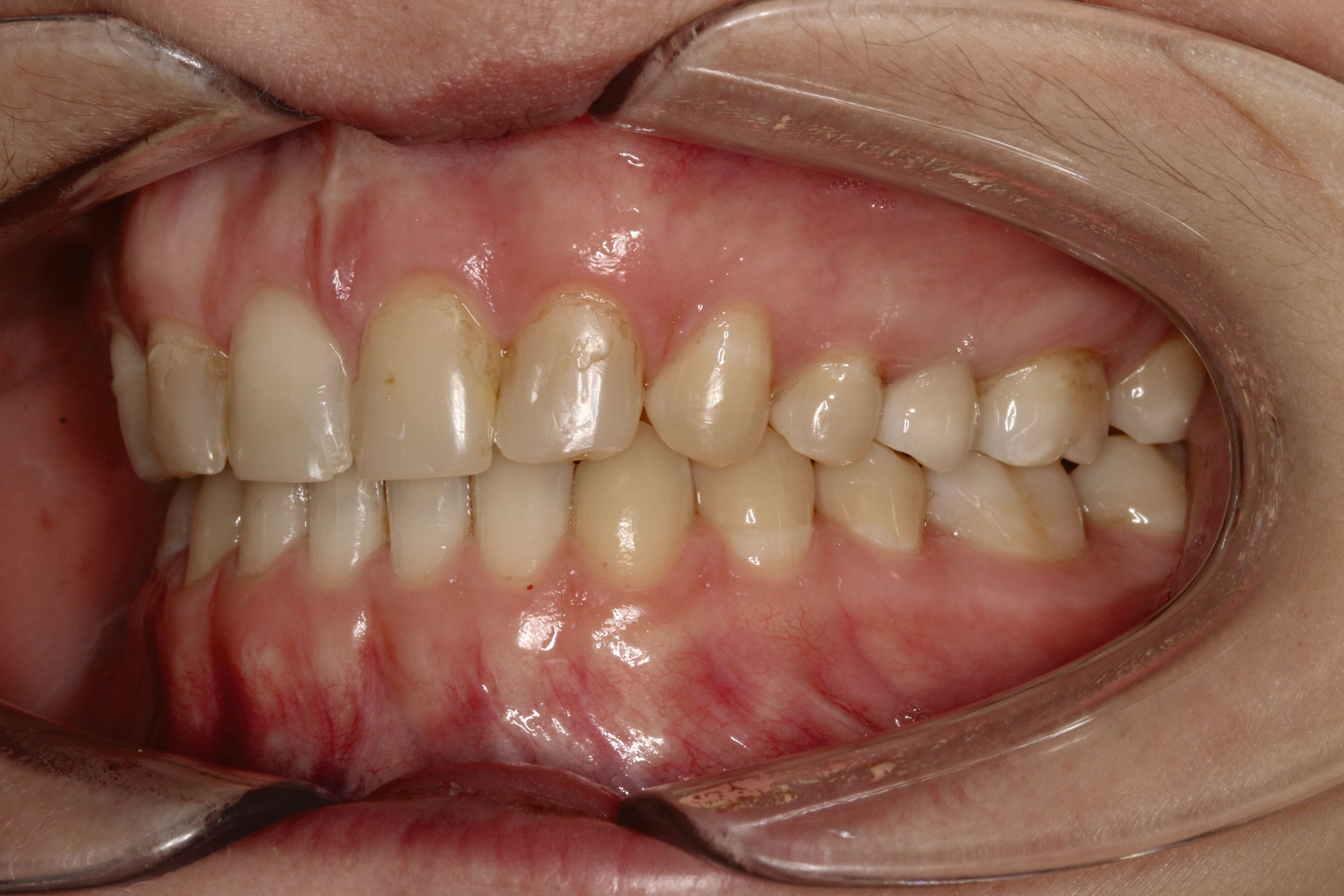 Entscheidet sich die Patientin gegen eine Lückenöffnung im Bereich der anterioren Nichtanlagen und für einen kieferorthopädischen Lückenschluss durch Mesialisierung der Eckzähne, so verlagert sich der Platzüberschuss in den Seitenzahnbereich. Auch im Seitenzahnbereich stehen die oben genannten Therapieoptionen konventionelle Brücke und Einzelzahnimplantat mit den jeweiligen Vor- und Nachteilen zur Verfügung.