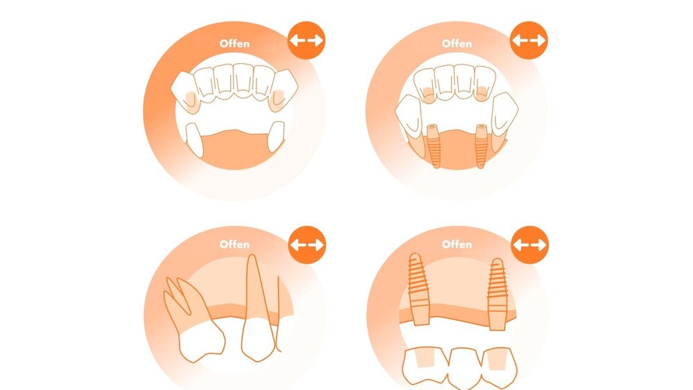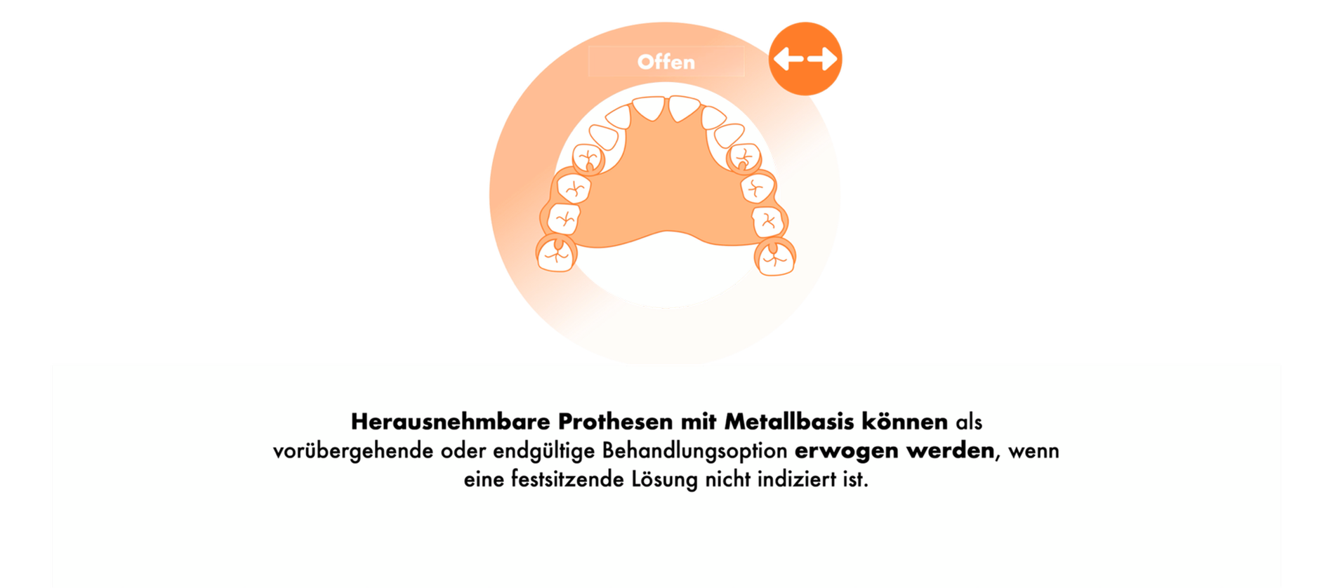 Implantate können in beiden Versorgungsformen indiziert sein, parodontal vorgeschädigte Zähne unterstützen und so beispielsweise eine parodontal vorgeschädigte Front durch eine stabile posteriore Abstützung entlasten und somit deren Langzeitprognose verbessern. Weiterhin können das Patientenalter, patientenbezogene Faktoren, Patientenwünsche, die Vorgeschichte (schon länger abnehmbar versorgt?), die Prognose der verbleibenden Pfeiler, ästhetische Aspekte und auch die wirtschaftliche Situation die Entscheidung maßgeblich beeinflussen.
