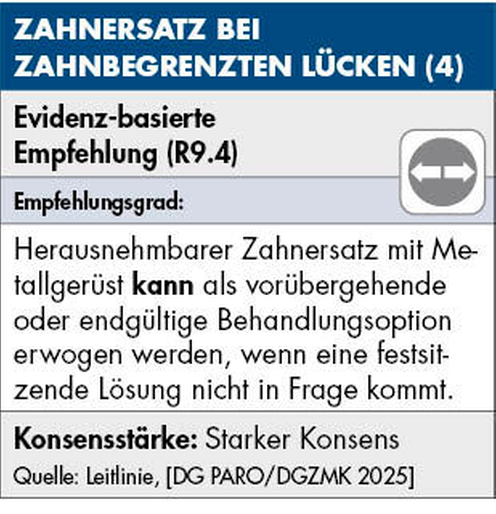 Klinische Empfehlungen für zahnbegrenzte Lücken