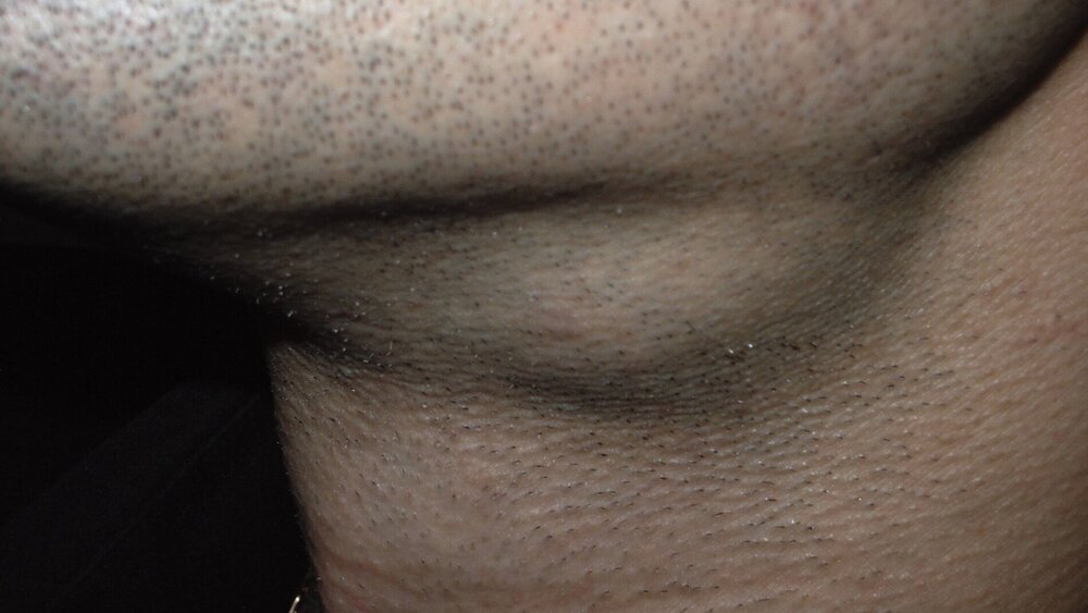 Die weitere Anamnese war unauffällig. Vorerkrankungen bestanden nicht und auch eine Dauermedikation wurde verneint. Bei der klinischen Untersuchung zeigte sich eine submandibuläre, druckdolente Schwellung (Abbildung 1) ohne Mundöffnungseinschränkung oder dentalen Fokus. Der Mundboden war insbesondere linksseitig angehoben mit einer palpablen, gut abgrenzbaren Verhärtung entlang des Verlaufs des Ductus submandibularis.