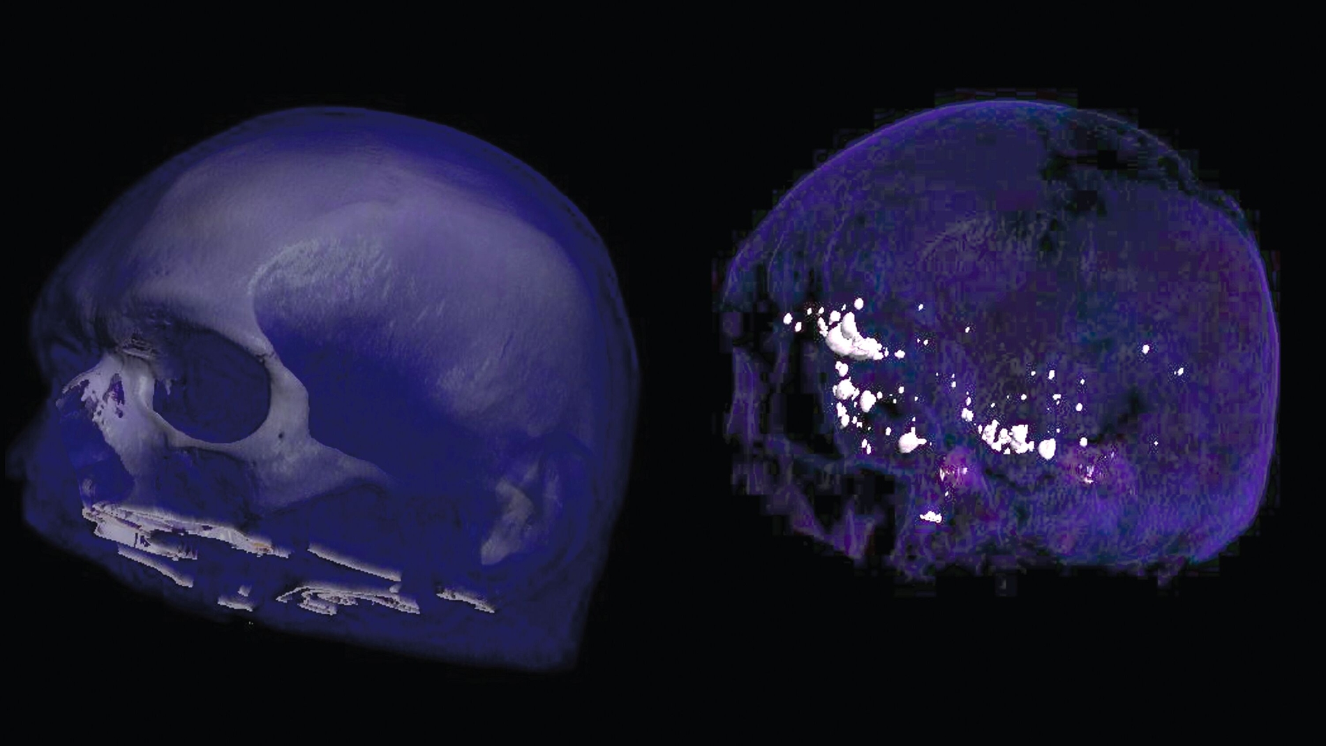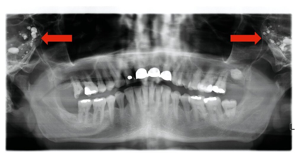 Zunächst kamen klassische Verkalkungen oder Ablagerungen, wie man sie gelegentlich im Kiefer- oder Halsbereich sieht, in Betracht: