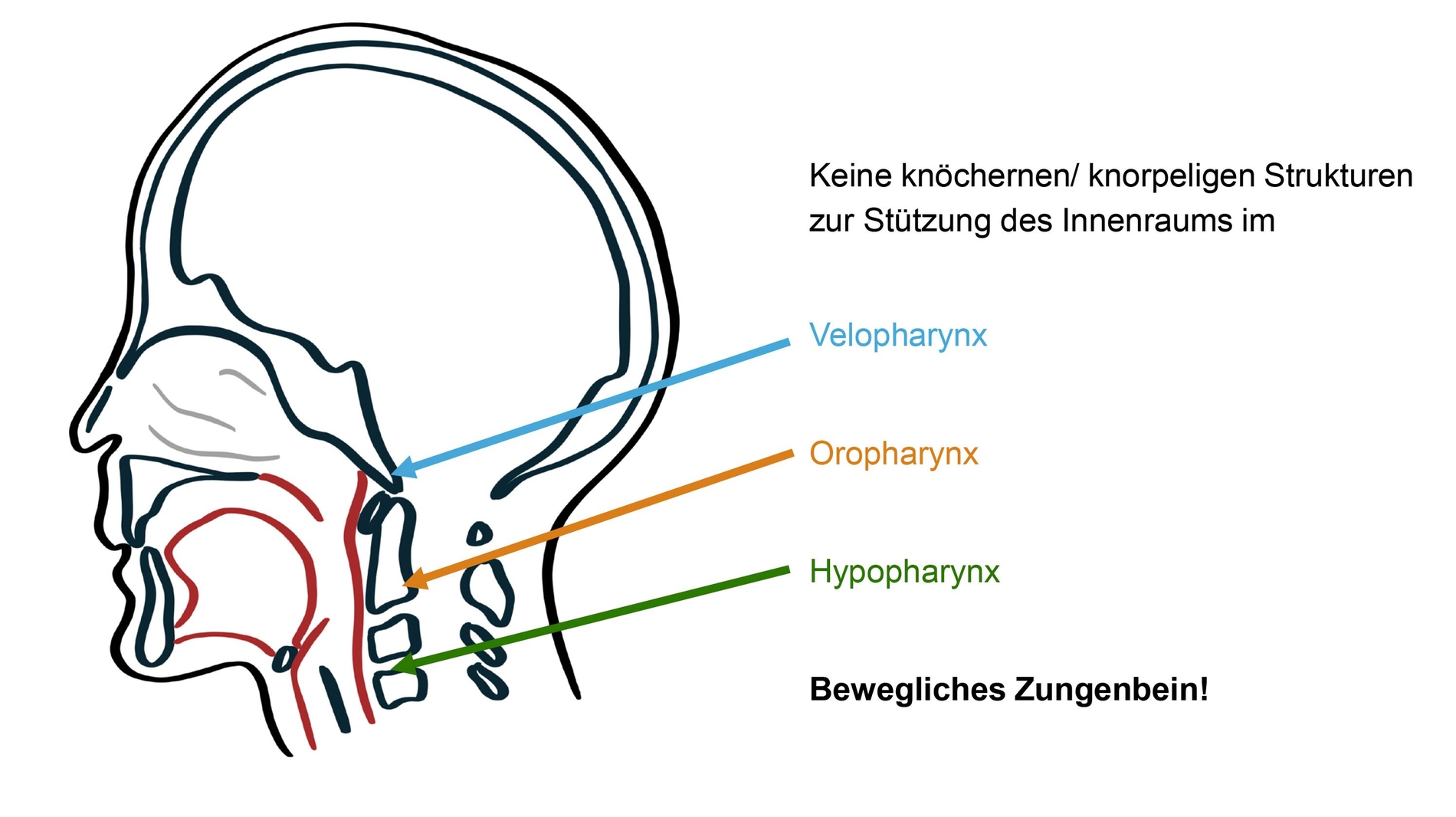 der anatomisch für einen Kollaps anfällige obere Atemweg,