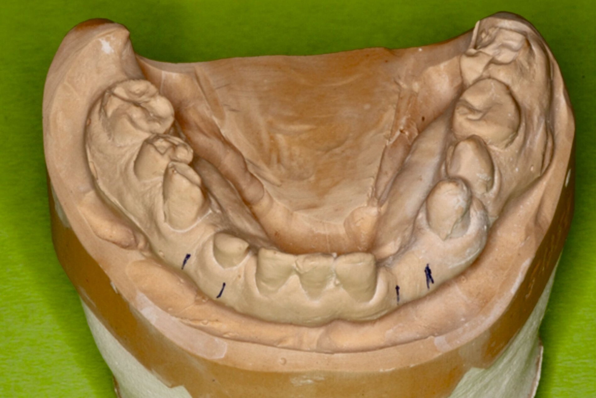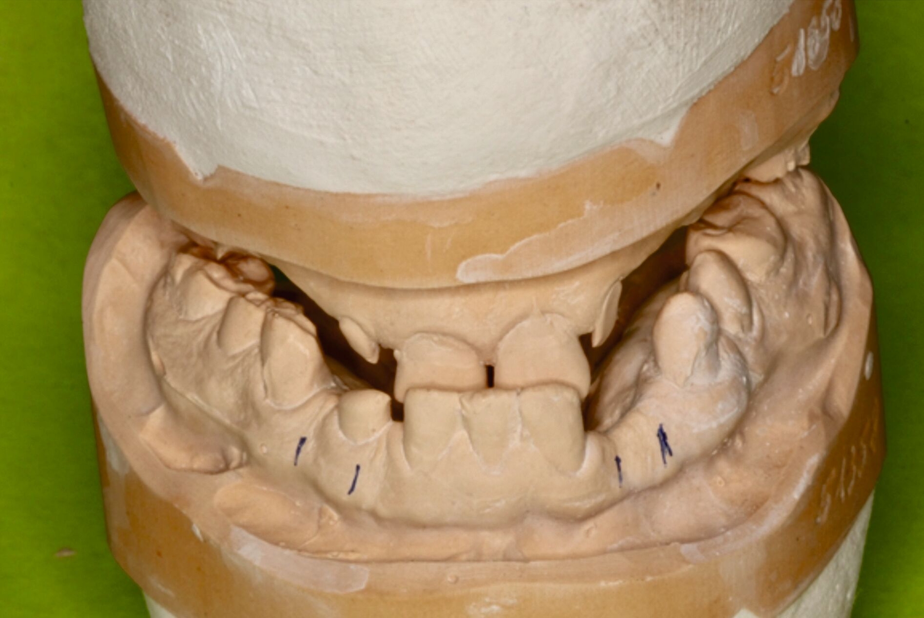 Zu Beginn der Behandlungsplanung wurden ein digitales OPG sowie Planungsmodelle erstellt (Abbildung 2). Interdisziplinär wurden mit dem Prothetiker, Chirurgen und Zahntechniker anhand der vorliegenden Modellanalysen und der klinischen Situation des Patienten verschiedene Therapieoptionen entwickelt und gemeinsam bewertet.