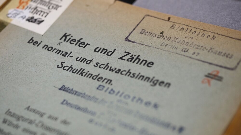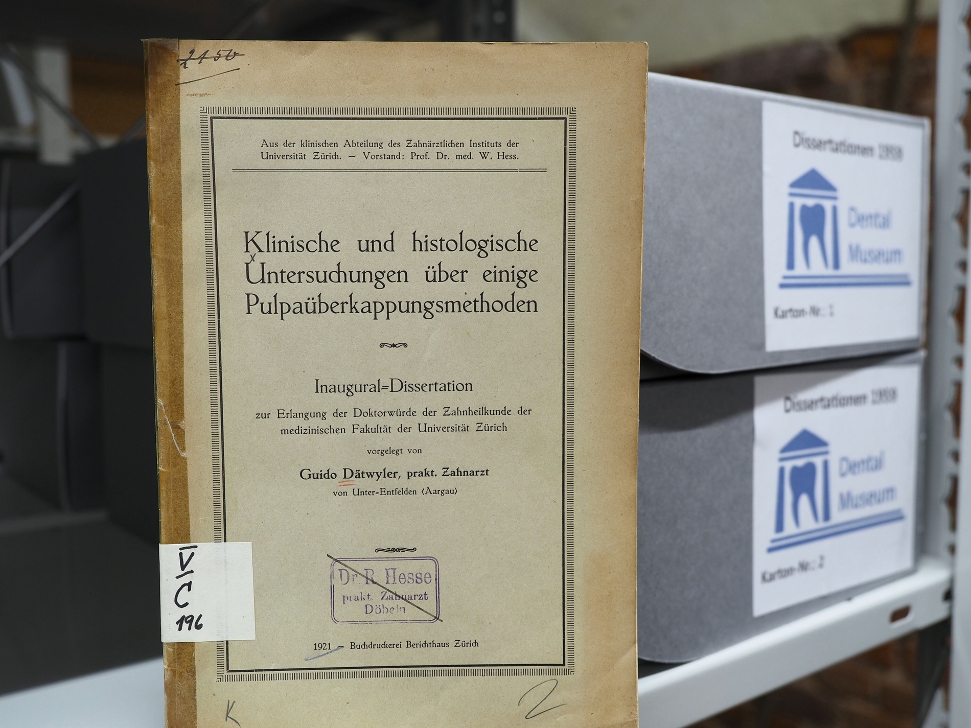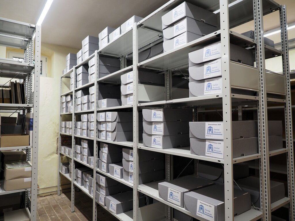 Es gibt die Dauerausstellung im Hauptgebäude, zusätzlich konzipiert und realisiert Haesler alle ein bis zwei Jahre eine Sonderausstellung zu einem selbst gewählten Schwerpunkt, aktuell „Zahn I Halte I Apparate“, siehe Teil 12 dieser Serie (zm 13/2025). Parallel wächst seit Jahren eine Bibliotheca dentaria heran, in der Dissertationen, Kataloge und Zeitschriften archiviert werden. Haesler: „Der Reichtum unserer Bibliothek ist schon jetzt unvergleichbar.“