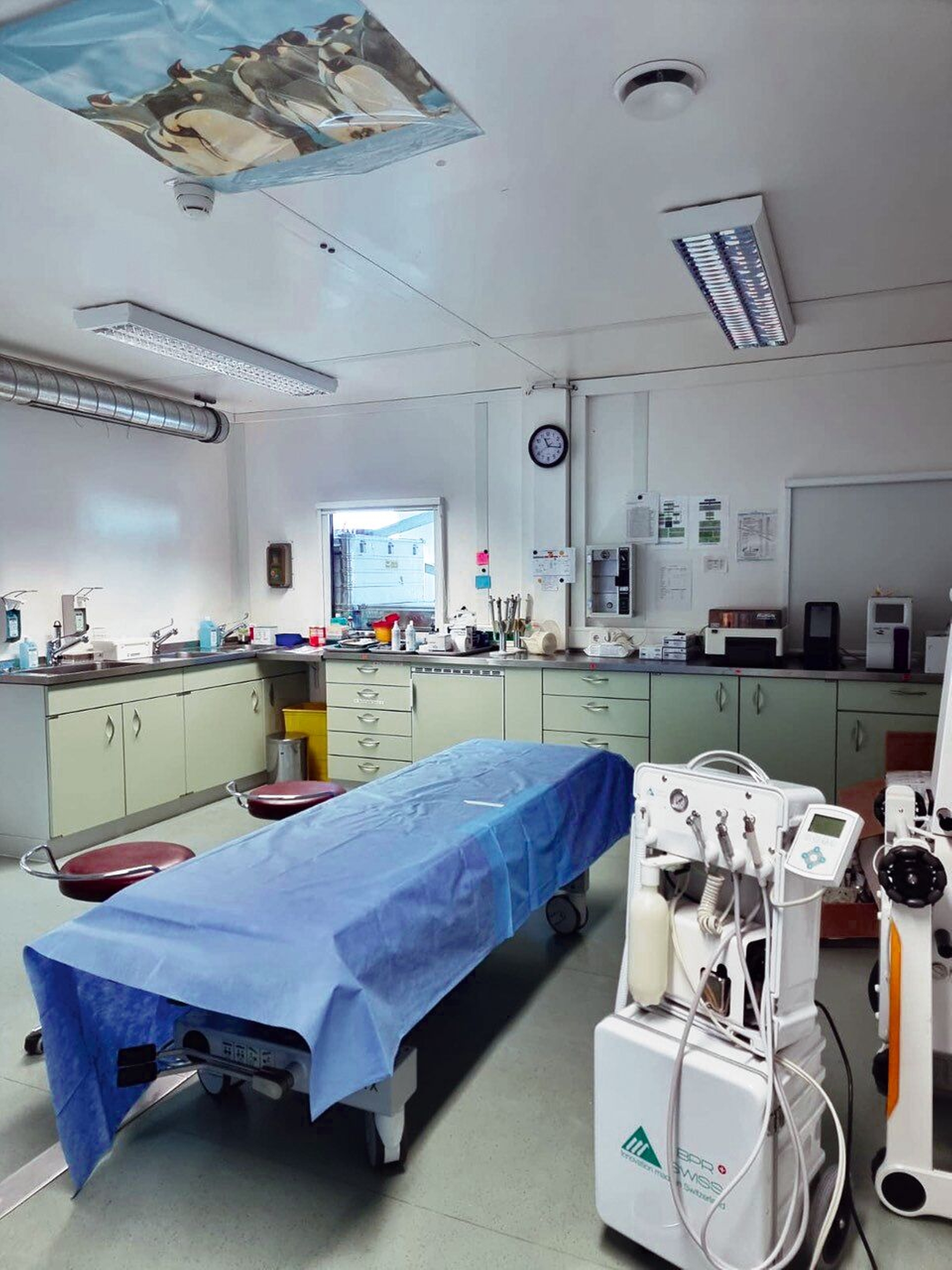 Da der Stationskoch in der Antarktis traditionell eine Rolle als Hilfssanitäter übernimmt, bekam auch er in der Zahnarztpraxis eine Schulung im Umgang mit zahnmedizinischen Notfällen. Diese Schulung umfasst grundlegende Maßnahmen bei akuten Schmerzen, Erste-Hilfe-Maßnahmen bei Verletzungen sowie den Umgang mit Wunden und deren Versorgung.