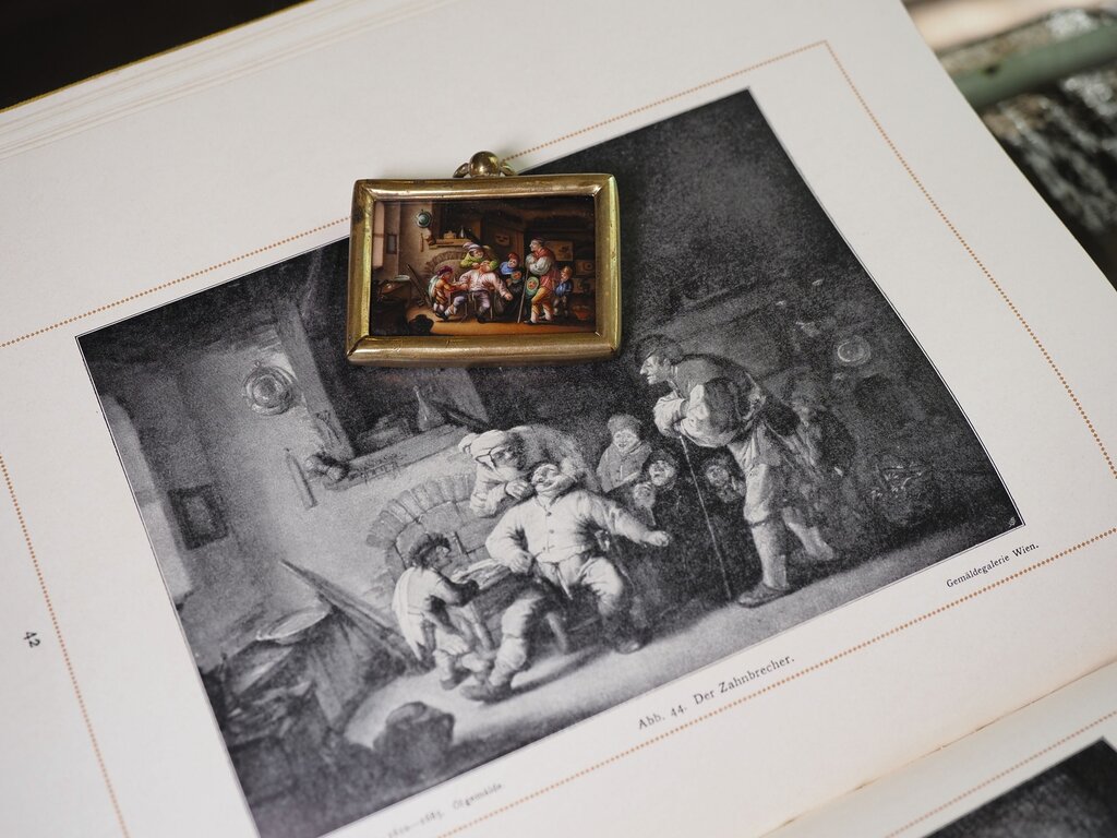 Verwendet wurden die Miniaturbilder als Andachtsbild, als private Schätze und Porträts – Auftraggeber waren dann der Adel und das gehobene Bürgertum –, als Dokumentation berühmter Werke oder auch für wissenschaftliche Zwecke. Man konnte sie mitnehmen und besitzen. Spekulativ bleibt die konkrete Motivation bei unserem (nachgemalten) Kunstwerk: Warum eine Kopie des Zahnbrechers? Fingerübung während der Ausbildung, als Geschenk für einen Kollegen, ein privater Sammler, zur Verbreitung eines größeren Gemäldes?