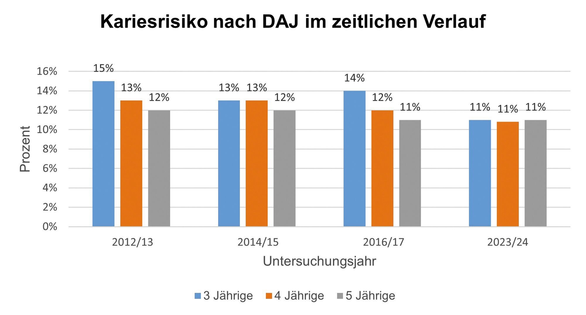 Das seit 2012/2013 nur geringfügig rückläufige und teilweise stagnierende Kariesrisiko verdeutlicht, dass die bisher angewandten gruppenprophylaktischen Konzepte für eine signifikante Verbesserung der Mundgesundheit in Risikogruppen nicht ausreichen. Die Einschränkungen der gruppenprophylaktischen Arbeit während der Pandemie haben sich zusätzlich negativ auf die Zahngesundheit der Kinder ausgewirkt, die ohnehin ein erhöhtes Kariesrisiko haben.