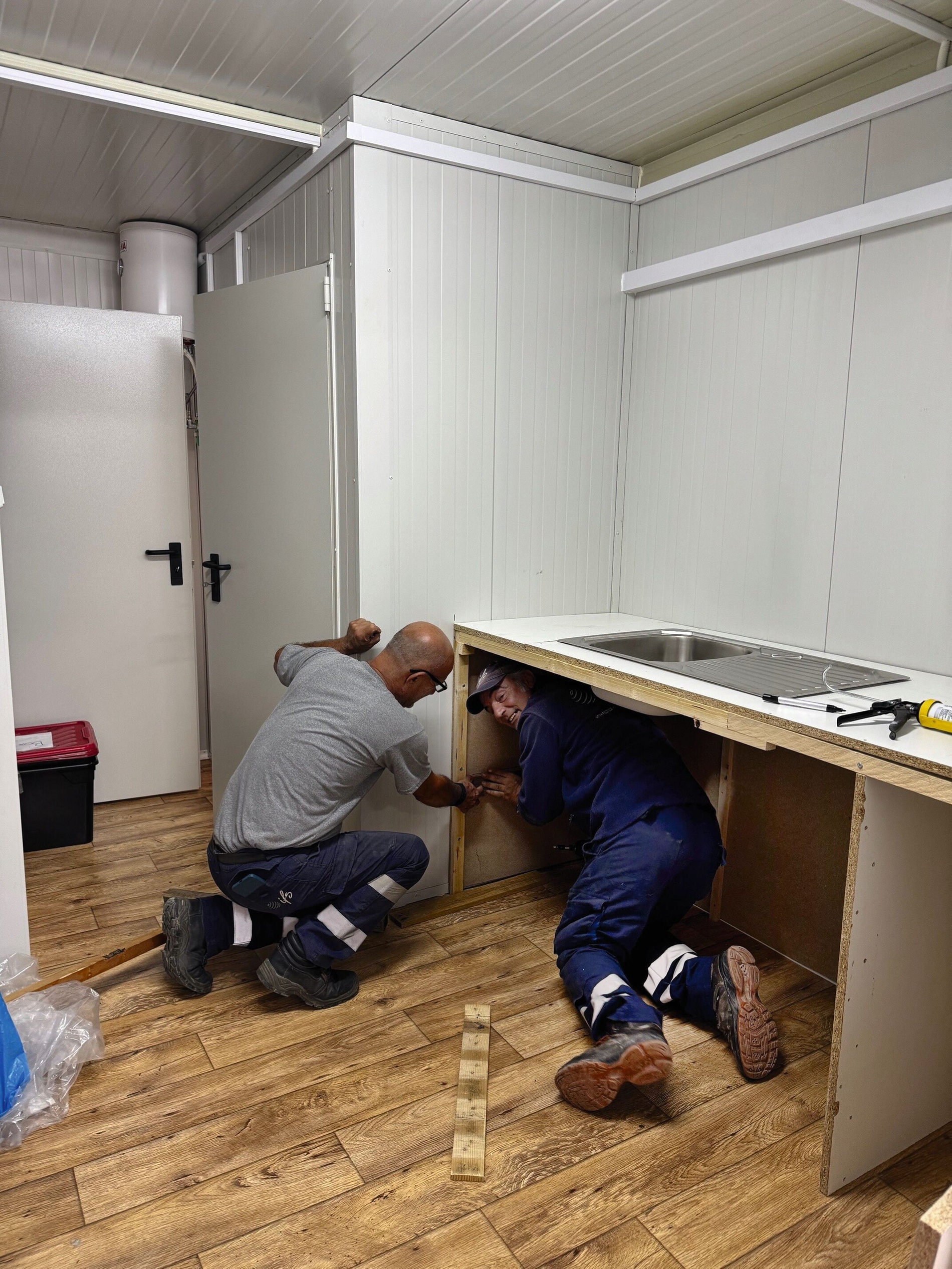 Statt sie zu entsorgen, entschieden wir uns gemeinsam mit der örtlichen Gebäudeverwaltungsfirma, das Holz und sogar die Schrauben wiederzuverwenden. Aus den Materialien entstand eine funktionale Einrichtung für den Bereich Reinigung, Desinfektion und Sterilisation. Damit konnten wir eine nachhaltige Lösung und eine effiziente und ressourcenschonende Arbeitsumgebung schaffen.
