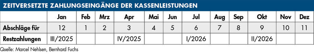 Je nach Verhältnis von Kassen- und Privatleistungen fällt die zeitliche Verschiebung der Zahlungseingänge entsprechend stärker oder schwächer aus.