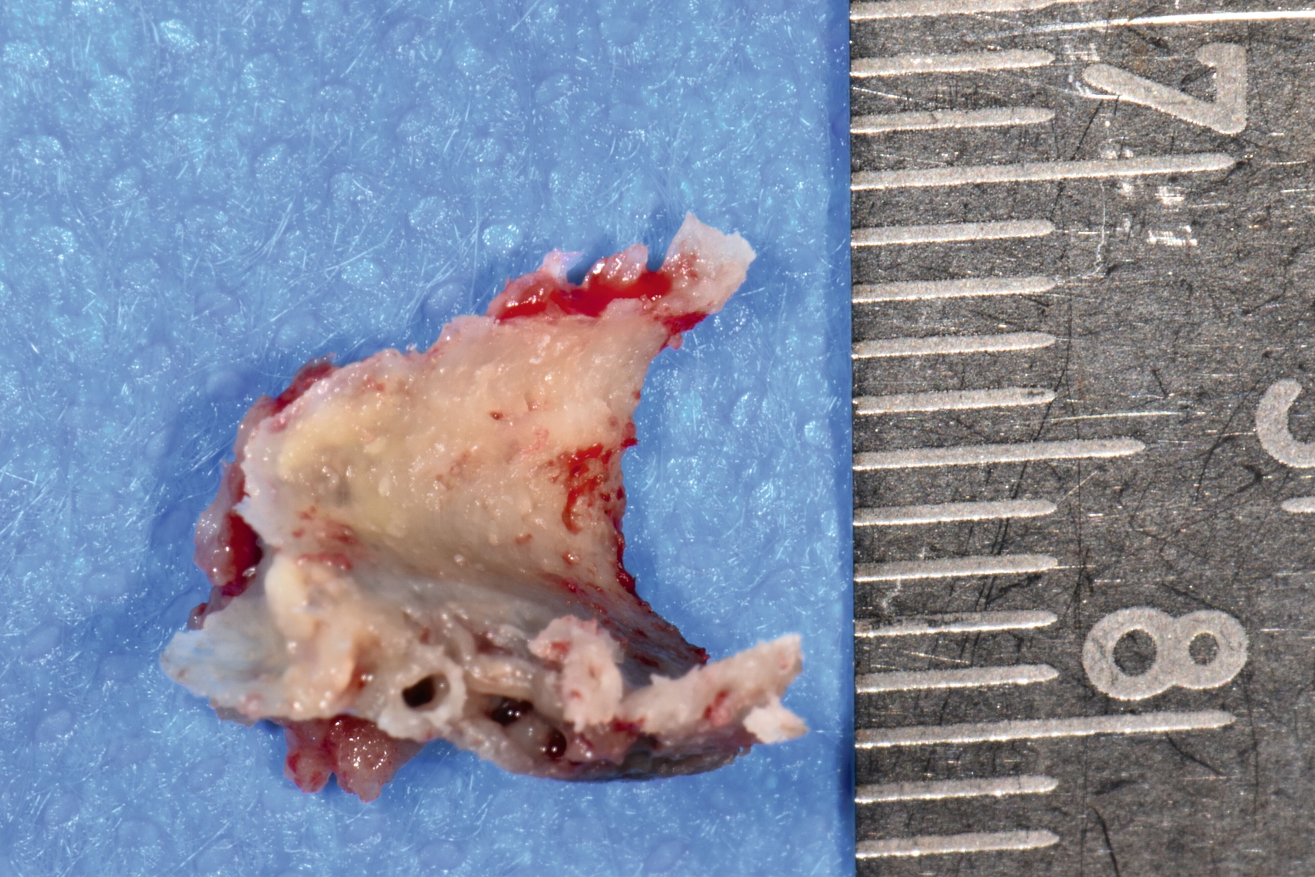Im beschriebenen Fall wurde nach der Sequestrotomie, die eine ausgedehnte Knochenwundfläche hinterließ, ergänzend PRF appliziert, um die Weichgewebsheilung zu fördern und zugleich auf eine plastische Deckung verzichten zu können. Der Einsatz von PRF bot dabei eine biologische Unterstützung der sekundären Schleimhautheilung und ermöglichte eine nahezu komplikationslose Wundregeneration trotz der großflächigen Exposition. Klinische Studien belegen eine beschleunigte epitheliale Regeneration und eine geringere Inzidenz von Wunddehiszenzen nach PRF-Anwendung [Temmerman, 2016]. Ein solcher Heilungsverlauf wäre bei Medikamenten-assoziierten oder Strahlen-bedingten Osteonekrosen in der Regel nicht zu erwarten, da dort (unter anderem) eine persistierende Gefäßschädigung und eine chronische Ischämie bestehen. Im Gegensatz dazu ist die Durchblutung bei der Herpes-Zoster-assoziierten Osteonekrose nach Abklingen der akuten Vaskulitis meist wiederhergestellt, was eine weitgehend physiologische Regeneration des Gewebes ermöglicht.
