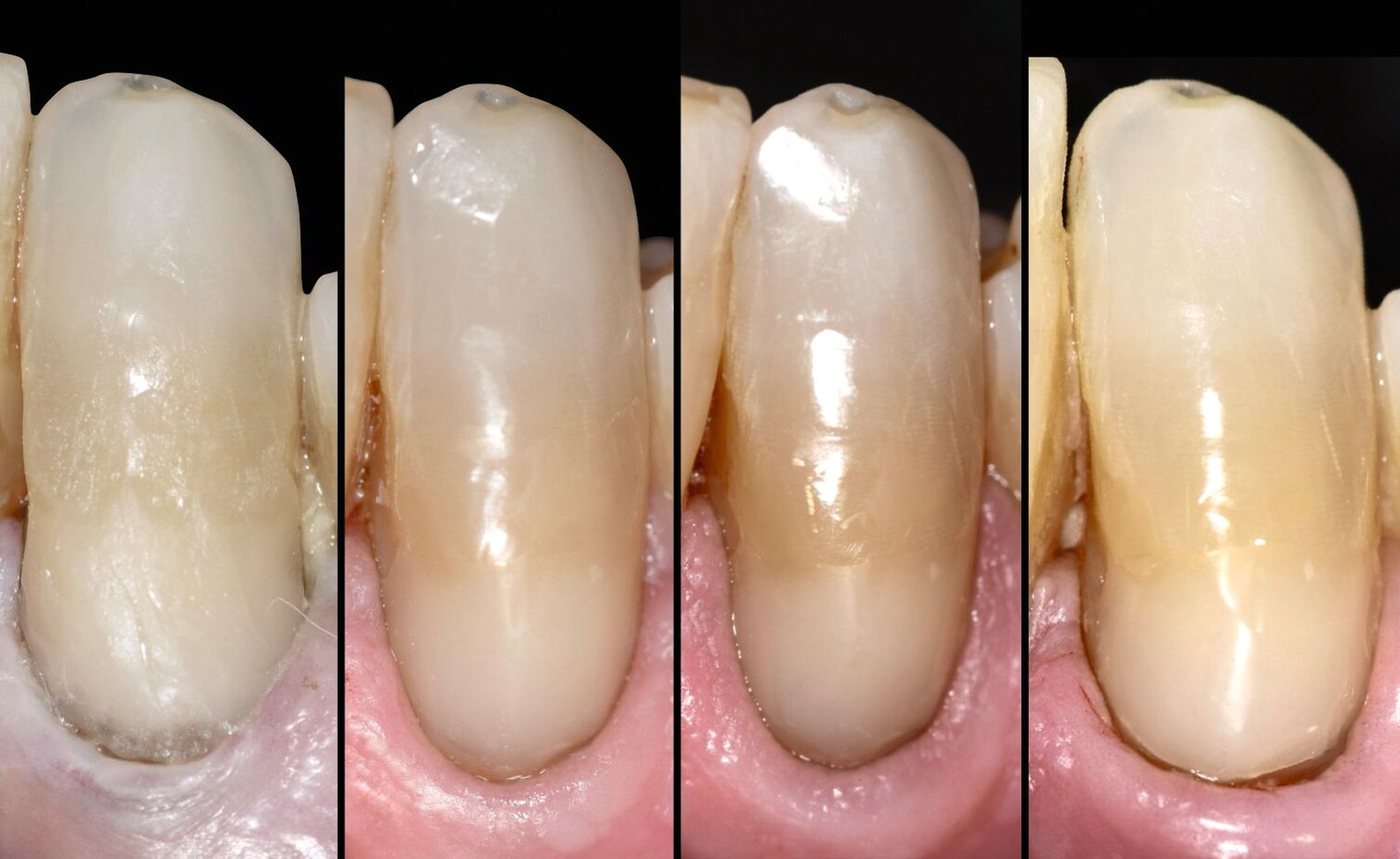 Bei der beschriebenen Technik zur schrittweisen Vereinfachung der Morphologie wurden ein fließfähiges und ein hochviskoses Komposit-Füllungsmaterial verwendet. Eine häufig gestellte Frage ist, ob fließfähige Komposite weniger farbstabil sind als hochviskose Materialien. Hintergrund ist, dass fließfähige Komposite auf Kunststoffbasis einen geringeren Füllstoff- und einen höheren Kunststoffmatrixanteil als ihre hochviskosen Pendants haben, wodurch sie im Laufe der Zeit mehr Wasser und Verfärbungsstoffe aufnehmen können.