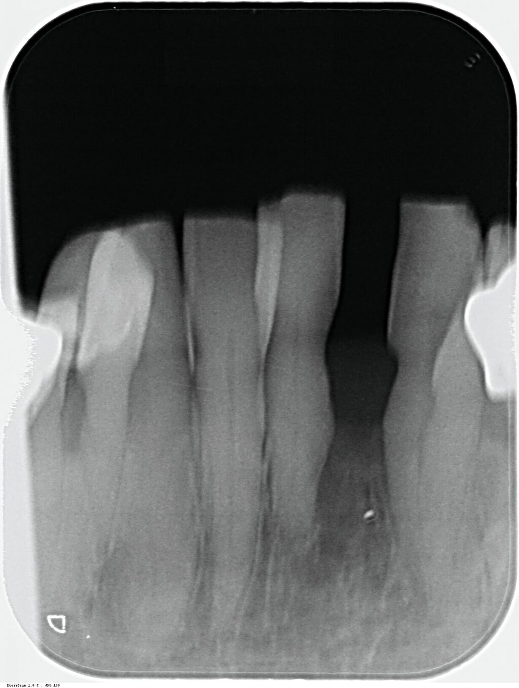 Die Einjahreskontrolle der Schienung konnte im Herbst 2024 durchgeführt werden, die Schienung leistete weiterhin die gewünschte Funktion, Schäden am Prothesenzahn oder am Schienungsmaterial konnten bisher nicht festgestellt werden.