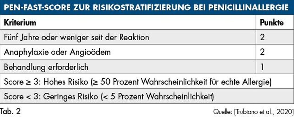 Angegebene Penicillinallergien sollten kritisch hinterfragt werden, hier ist der FAST-PEN-Score ein sinnvolles, ergänzendes Tool.