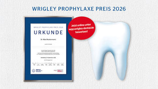 Wrigley Oral Health ProgramWrigley Prophylaxe Preis Der Wrigley Prophylaxe Preis 2026 wird erstmals für DACH-Region ausgeschrieben. Prämiert werden innovative Projekte in zahnmedizinischer Prävention. Die Bewerbungen ist bis zum 1. März 2026 möglich. 25.11.2025