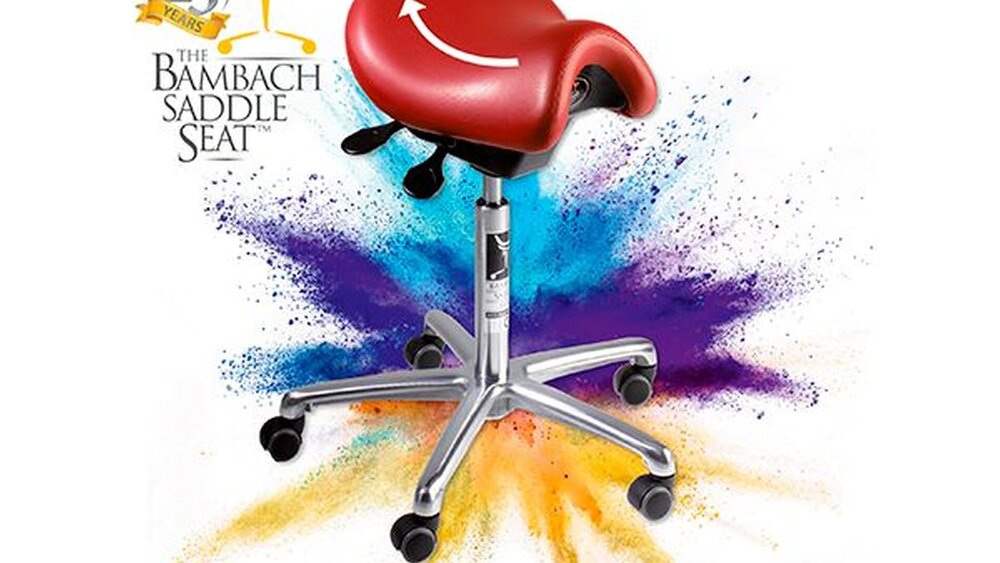 Der Bambach Sattelsitz ist eine Investition in die eigene Gesundheit, ist Prophylaktikum und Therapeutikum gleichermaßen. Er hilft, eine Sitzposition einzunehmen, welche der Position im Stehen sehr nahekommt und damit den Druck auf die Bandscheiben und Wirbelsäule signifikant vermindert, also eine aktive Sitzhaltung fördert. Der Bambach Sattelsitz wird speziell auf die Bedürfnisse des Anwenders abgestimmt und zusammengestellt (Gestell, Fußrollen, Rückenlehne, Armlehne, Fußring und vieles mehr). Zudem steht eine große Farbauswahl zur Verfügung und ist optional auch im Leder der Behandlungseinheit verfügbar.
