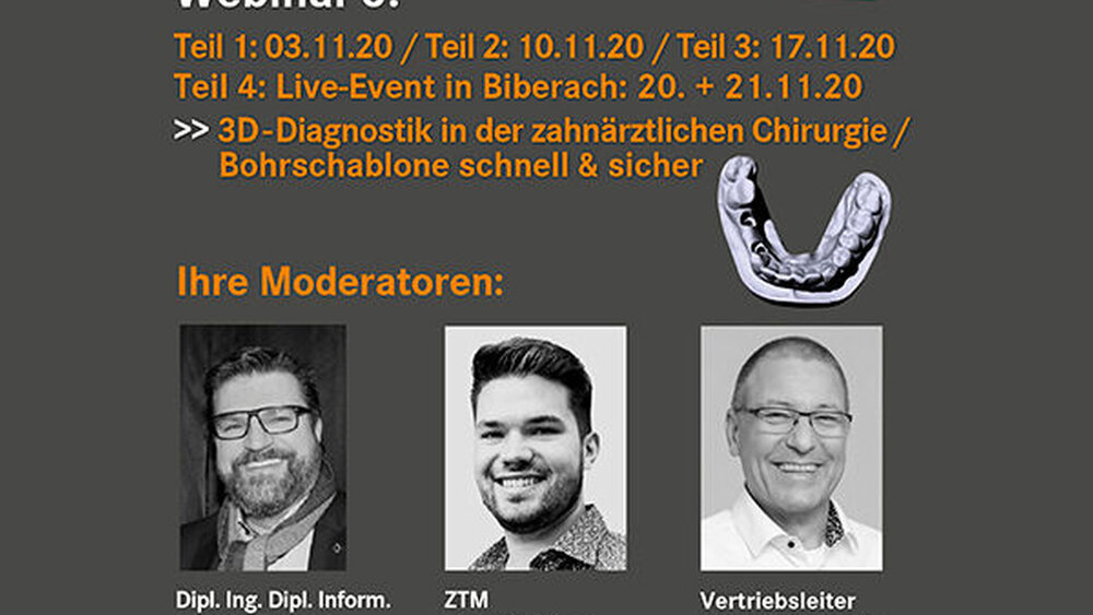 orangedental lädt Interessierte zur dreiteiligen Webinar-Serie 6 im November 2020 mit dem Thema „3D-Diagnostik in der zahnärztlichen Chirurgie / Bohrschablone: schnell & sicher“ ein.