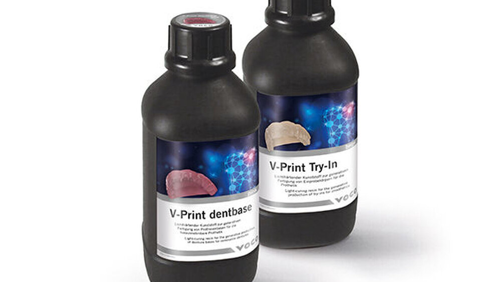 Die V-Print-Familie von VOCO erhält Zuwachs durch den lichthärtenden Kunststoff V-Print dentbase und V-Print Try-In für die Herstellung von Einprobekörpern für die Prothetik in der CAD/CAM-Technik.