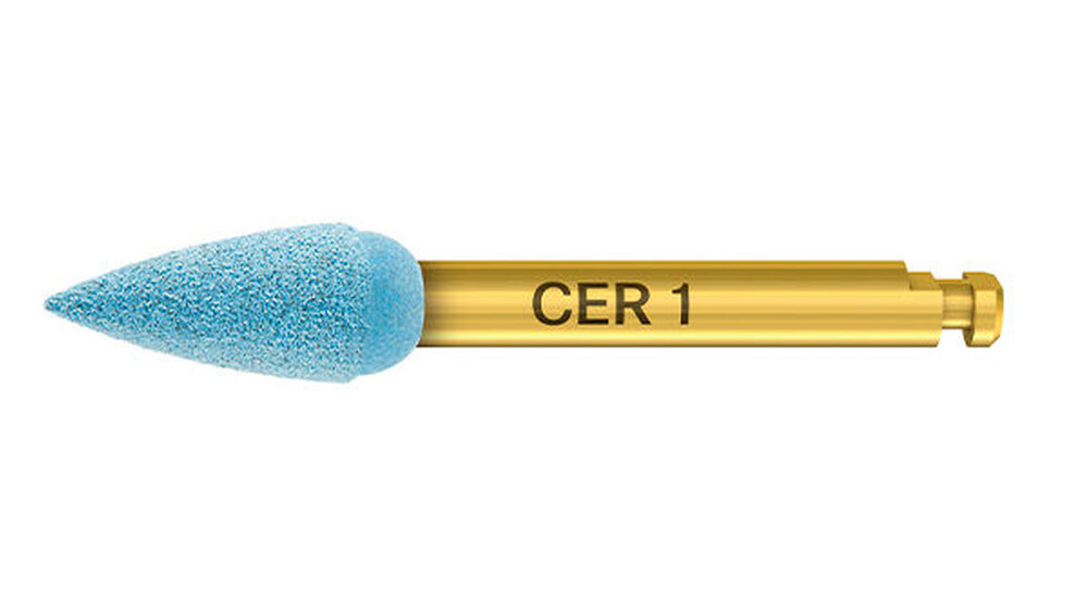 Einfach von Farbe bzw. Schrift leiten lassen: Alle Art2 Polierer besitzen einen goldenen Schaft. Dann auf die Farbe des Arbeitsteils achten – Hellrosa/Gelb für Komposit, Hellblau/Grau für Keramik. Gegenüber dem Schriftzug „Komet“ am Schaft steht CER1 bzw. CER2 (die beiden Polierstufen für Keramik) oder COMP 1 bzw. COMP 2 (die beiden Polierstufen für Komposit). Alles in standfester Laserqualität. Diese Farb- und Schrifthilfen erleichtern das Instrumentenmanagement. Sie führen zu Zeitersparnis und noch mehr Effizienz durch den gezielten Griff in die Schublade.