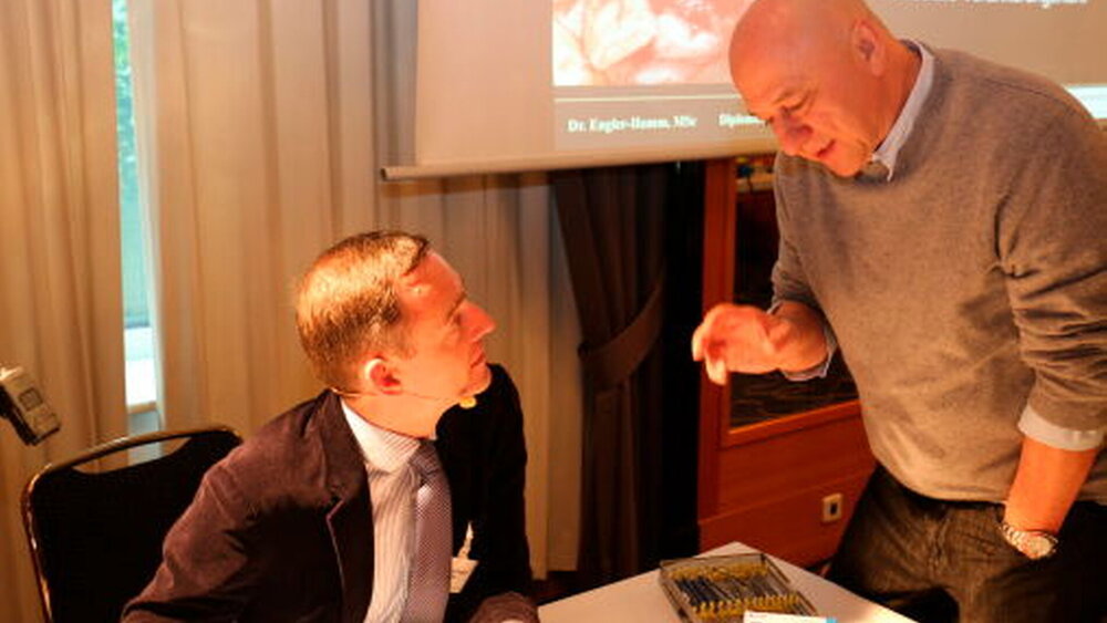 Auf "das Münchner Implantatkonzept – Chirurgie und Prothetik in zwei Sitzungen" konnten sich die Teilnehmer des Workshops 1 freuen. PD Dr. Jan-Frederik Güth und Zahntechniker Josef Schweiger stellten das Münchner Implantatkonzept als Beispiel für individuelle, computergestützte Implantatabutments und Restaurationen bei der Versorgung eines Einzelzahnimplantats vor.