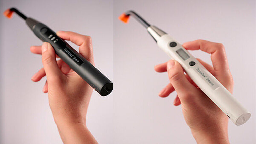 Translux Wave und Translux 2Wave sind ab sofort über den Dentalhandel erhältlich. Die Geräte werden zusammen mit einem ergonomischen Lichtleiter mit einem Durchmesser von 8 Millimeter geliefert. Translux Wave und Translux 2Wave bestehen jeweils aus einer Ladestation und einem Handstück, das über eine herausnehmbare Lithium-Ionen-Batterie mit Strom versorgt wird.