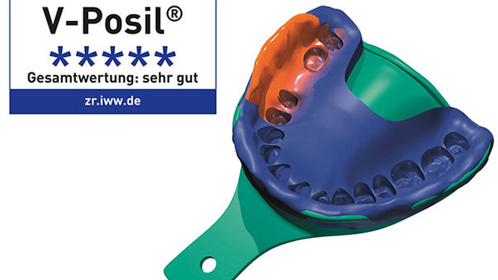 Mehr als 85 Prozent der ZR-Tester empfehlen V-Posil weiter und möchten es auch selbst in der Praxis verwenden. Aus gutem Grund: Im Vergleich zu ihren bisher genutzten Produkten sei V-Posil dimensionsstabiler, lasse sich besser „ausschneiden“ und biete eine glattere Oberfläche sowie eine höhere Zeichnungsschärfe. Das gesamte V-Posil-System mit den Viskositäten Heavy Soft Fast, Putty Fast, Light Fast, X-Light Fast und Mono Fast sowie V-Posil Adhesive, dem Löffeladhäsiv für VPS, wurde mit der Gesamtnote 1,3 bewertet und erhält damit volle fünf Sterne.