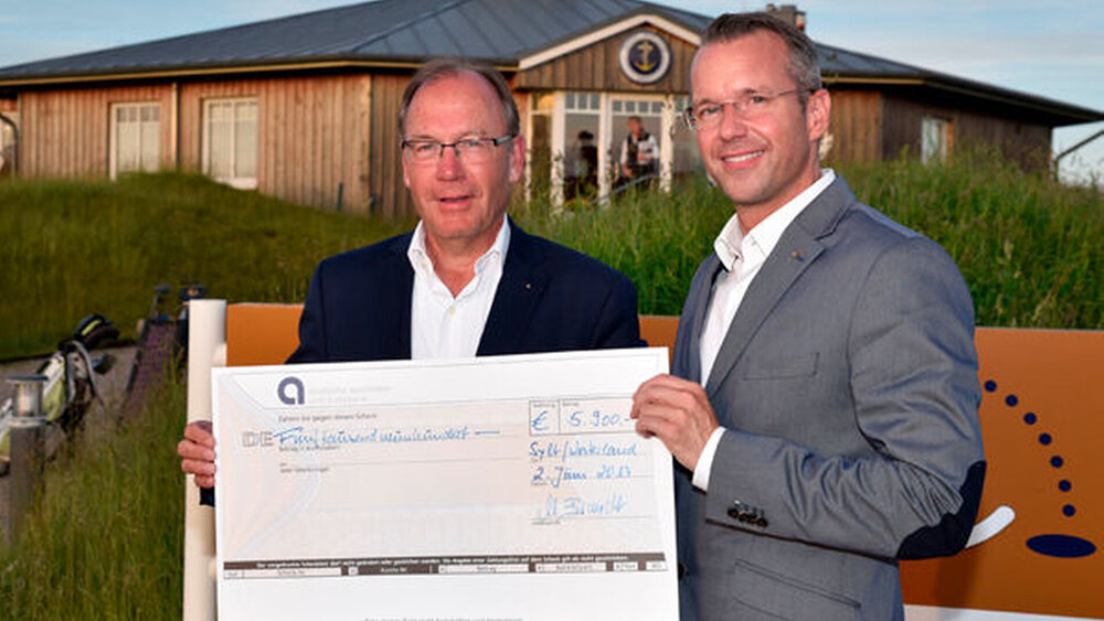 Zum Abschluss der 59. Sylter Woche konnte der Präsident der Zahnärztekammer Schleswig-Holstein, Dr. Michael Brandt, den Erlös des Turniers in Höhe von 5900 Euro für den Hilfsfonds „Familien in Not“ an den Bürgermeister der Gemeinde Sylt, Nikolas Häckel, überreichen.