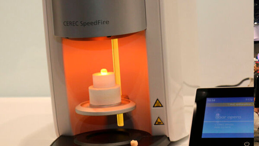 Nun können CEREC-Zahnärzte ihren Patienten auch Vollzirkonkronen und –brücken in nur einer Sitzung von zirka 90 bis 120 Minuten anbieten. Der „Umweg Labor“ entfällt. Möglich macht dies die Kombination des neuen Sinterofens CEREC Speedfire mit CEREC Zirconia. Aufgrund der hohen Sintergeschwindigkeit erlaubt dieser Ofen auch das Glasieren.