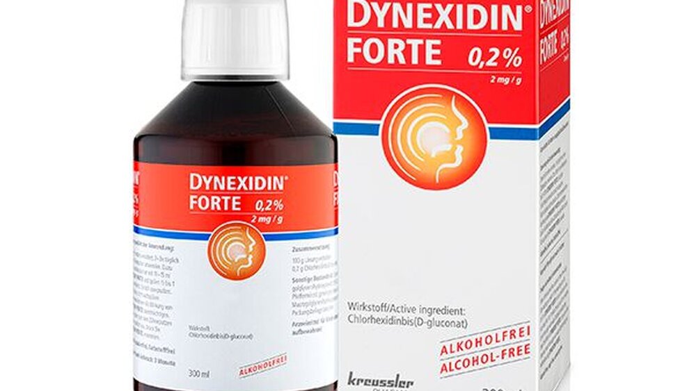 Pflichttext:DYNEXIDINFORTE. Zus.: 100 g enthalten: Wirkstoff: Chlorhexidinbis(D-gluconat) 0,2 g; weitere Bestandteile: Glycerol, Macrogolglycerolhydroxystearat (Ph. Eur.), Minzöl, Pfefferminzöl, gereinigtes Wasser. Enthält Macrogolglycerolhydroxystearat und Menthol. Anwendungsgebiete: wird vorübergehend angewendet: zur Verminderung von Bakterien in der Mundhöhle, als unterstützende Behandlung zur mechanischen Reinigung bei bakteriell bedingten Entzündungen des Zahnfleisches und der Mundschleimhaut sowie nach chirurgischen Eingriffen am Zahnhalteapparat. Bei eingeschränkter Mundhygienefähigkeit. Gegenanzeigen: Nicht anwenden: bei Überempfindlichkeit gegen Chlorhexidin oder einen der sonstigen Bestandteile, bei schlecht durchblutetem Gewebe in der Mundhöhle, am Trommelfell, am Auge und in der Augenumgebung, bei offenen Wunden und Geschwüren in der Mundhöhle (Ulzerationen), bei Säuglingen und Kleinkindern unter 2 Jahren (aufgrund altersbedingter mangelnder Kontrollfähigkeit des Schluckreflexes und Gefahr eines Kehlkopfkrampfes). Nebenwirkungen: Selten: Kurzzeitige Beeinträchtigung des Geschmacksempfindens, vorübergehendes Taubheitsgefühl der Zunge und vorübergehende Verfärbungen von Zunge sowie Zähnen und Restaurationen. Nicht bekannte Häufigkeit: Überempfindlichkeitsreaktionen gegen Bestandteile des Arzneimittels; vorübergehend oberflächliche, nicht blutende Abschilferungen der Mundschleimhaut; anaphylaktische Reaktionen (bis zum anaphylaktischen Schock). Ständiger Gebrauch ohne mechanische Reinigung kann Blutungen des Zahnfleisches fördern. Stand: März 2021. Chemische Fabrik Kreussler & Co. GmbH, 65203 Wiesbaden.