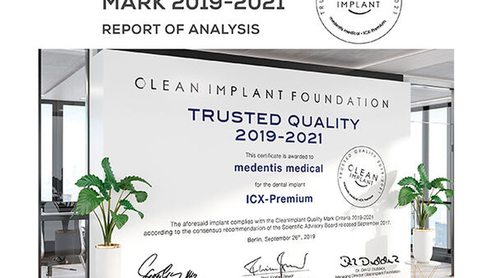 Die Clean Implant Foundation überprüft, ob auf Implantaten Rückstände verschiedenster Stoffe nachweisbar sind, oder ob z. B. organische Unreinheiten vorliegen. Der Prozess sowie die Kriterien wurden 2017 verabschiedet. Produkte, die das Sechs-Schritt-Prüfverfahren erfolgreich durchlaufen, werden mit dem Clean Implant-Zertifikat ausgezeichnet.Unabhängige Testverfahren durch offiziell akkreditierte Prüflaboratorien liefern die Basis für diese aussagekräftigen Ergebnisse.