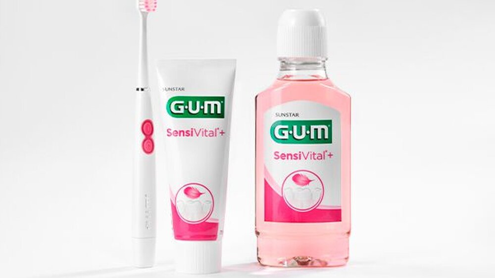 Schonende und gründliche Reinigung bei Dentinhypersensibilität: Das Sortiment GUM SensiVital+ mit Zahnpasta und Mundspülung sorgt für eine schnelle und langanhaltende Milderung der Zahnempfindlichkeit.