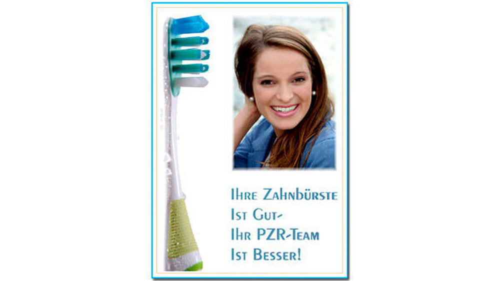 Zeigt man die Sichtweise vom Patienten, also Motive mit einem schönen Lächeln und Lebensfreude, weckt es zunächst das Interesse und die Aufmerksamkeit den Inhalt auch richtig zu lesen. Besteht noch die Möglichkeit ein Bild von der Assistenz oder dem Team mit zu integrieren, ist der Gewinn umso größer. Denn je persönlicher, je individueller, desto wertvoller erscheint es dem Patienten und umso leichter ist die PZR zu vermitteln.