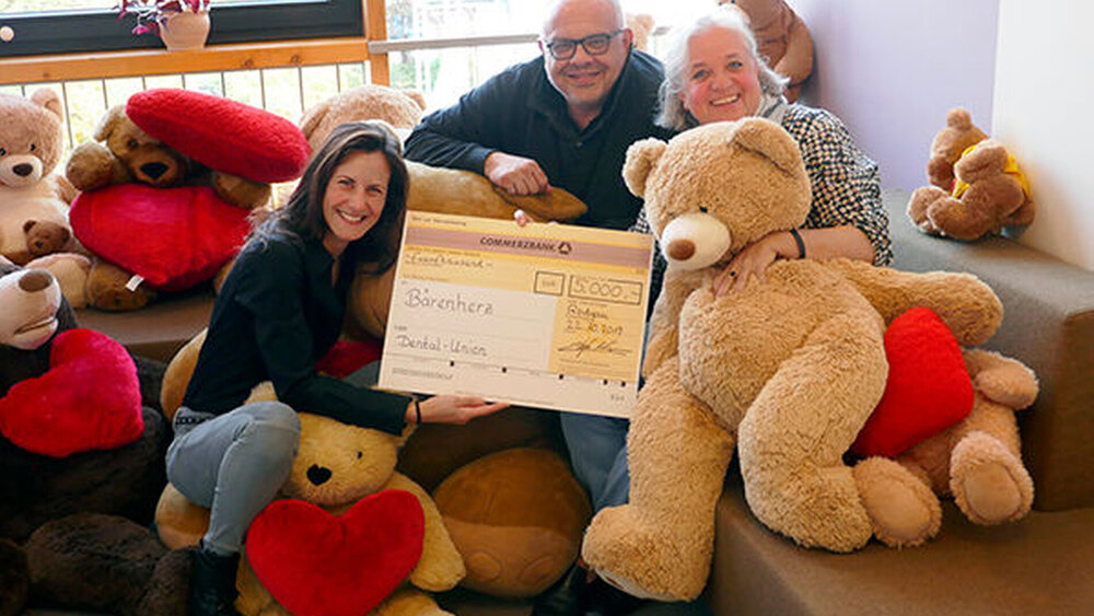 Auch in diesem Jahr konnten die Vertreter der Dental-Union GmbH nach einer Verkaufsaktion wieder persönlich einen Scheck über eine Spendensumme in Höhe von 5000 Euro an das Hospiz Bärenherz überreichen.