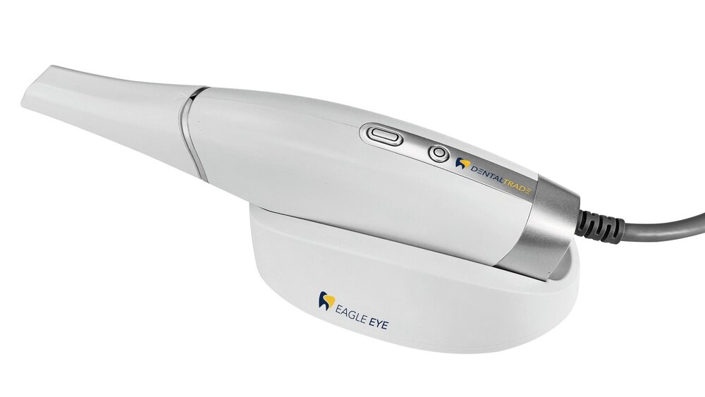 Ein weiterer Vorteil: Die digitalen Lösungen von Dentaltrade sind perfekt aufeinander abgestimmt und unterstützen die Arbeitsabläufe bei jedem Schritt der Patientenbehandlung. Mit dem Dentaltrade Eagle Eye Intraoralscanner werden hochauflösende Scans für eine effiziente Behandlungsplanung und einen passgenauen Zahnersatz erstellt. Die mobile Scan-Einheit unterstützt die detailgenaue Arbeit direkt am Behandlungsplatz.