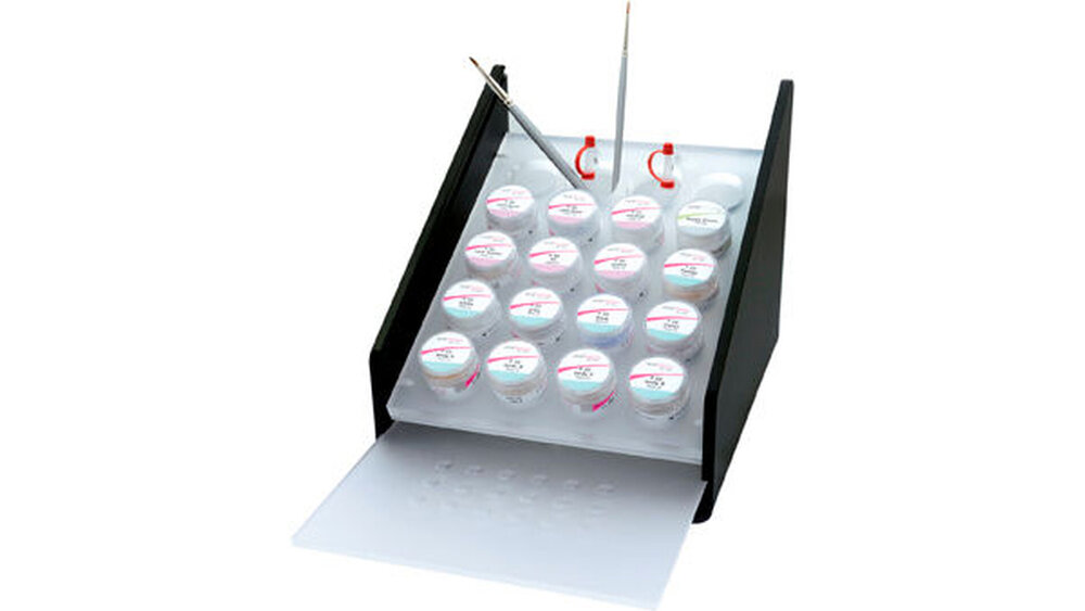 Das zusammengestellte ceraMotion One Touch Set umfasst 16 Einzelmassen sowie Spezialflüssigkeiten und Zubehör. Alle Bestandteile des Sets sind auch einzeln erhältlich.