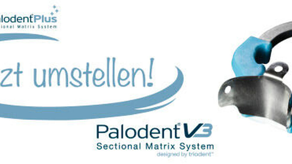 Die Teilmatrizensysteme von Palodent Plus und Triodent V3 sind seit Jahren eine Erfolgsstory: Zehntausende Zahnärzte verwenden weltweit diese Matrizensysteme, um anatomisch korrekte Kontaktpunkte besonders einfach und zuverlässig zu gestalten. Ab Mai 2015 werden Palodent Plus und Triodent V3 unter dem neuen Markennamen Palodent V3 zusammengeführt. Selbstverständlich bleiben alle Vorteile unverändert erhalten: Mit dem idealen Zusammenspiel von Ringen, Matrizen und Keilen sind hervorragende Ergebnisse bei Klasse-II-Restaurationen von Molaren und Prämolaren garantiert.