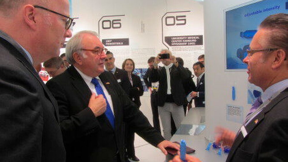Ein besonders hervorzuhebendes Highlight im Deutschen Pavillon ist eine Ausstellung, die in der Gestalt einer futuristischen Forschungsstation hergerichtet worden ist und den Besuchern einen Einblick in die aktuellsten Entwicklungen der Labortechnik und auch der Praxis bietet.