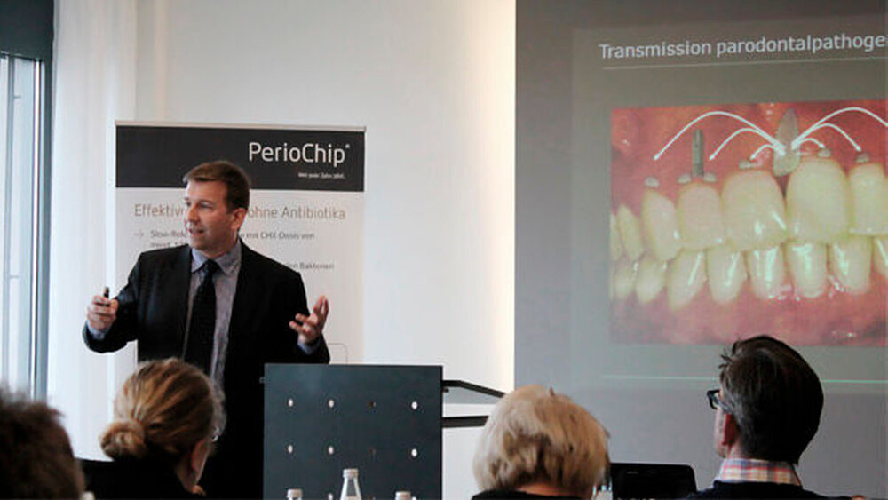 Parodontologe Prof. Eli Machtei von den renommierten Universitäten Haifa und Harvard entwickelte neue Therapieverfahren mit PerioChip, die sowohl bei Parodontitis als auch Periimplantitis beeindruckende Erfolge erzielten. In Wort und Bild stellte er seine Intensiv-Protokolle vor, die durch die Mehrfachgabe von PerioChip, einem 36-prozentigen Chlorhexidin-Chip, der lokal mit einer Pinzette in Taschen appliziert wird, Reduktionen der Taschentiefe bei Implantaten von bis zu zwei Millimetern verzeichneten: Ganz ohne operativen Eingriff. Wertvolle Unterstützung, um Patienten besser behandeln zu können, bot auch der Vortrag von PD Dr. Adrian Kasaj von der Universität Mainz. Er berichtete vom erfolgreichen Einsatz der Chlorhexidin-Chips und gab Empfehlungen zum Einsatz dieses Behandlungskonzepts. „Es ist sehr interessant zu sehen, welchen wissenschaftlichen Hintergrund die Produkte haben. Auch aus diesem Grund empfehle ich Kollegen, sich die Zeit für diese Fortbildung zu nehmen“, freute sich Dr. Tatjana Hussain über das informative Zusammenkommen.