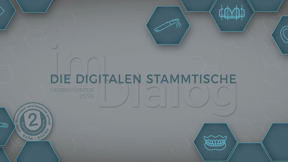 Die digitalen Stammtische richten sich sowohl an Einsteigerinnen und Einsteiger als auch an erfahrene Anwenderinnen und Anwender von Intraoralscannern. Die einzelnen Veranstaltungen können unabhängig voneinander besucht werden, bauen jedoch inhaltlich aufeinander auf. Im Mittelpunkt stehen praxisrelevante Themen wie effiziente Scanstrategien, Datentransfer und Datenarchivierung, digitale Okklusion, Smile Design, Gesichtsscans und Gingiva-Management. Auch die implantatprothetische Planung inklusive Scanbodies, Bohrschablonen und Implantatschlüssel wird behandelt. Weitere Schwerpunkte sind die digitale Herstellung von Kronen, Brücken, Prothesen, Alignern und Teleskoparbeiten sowie der Vergleich aktueller IOS-Systeme, typische Fehlerquellen und Aspekte der digitalen Patientenkommunikation.