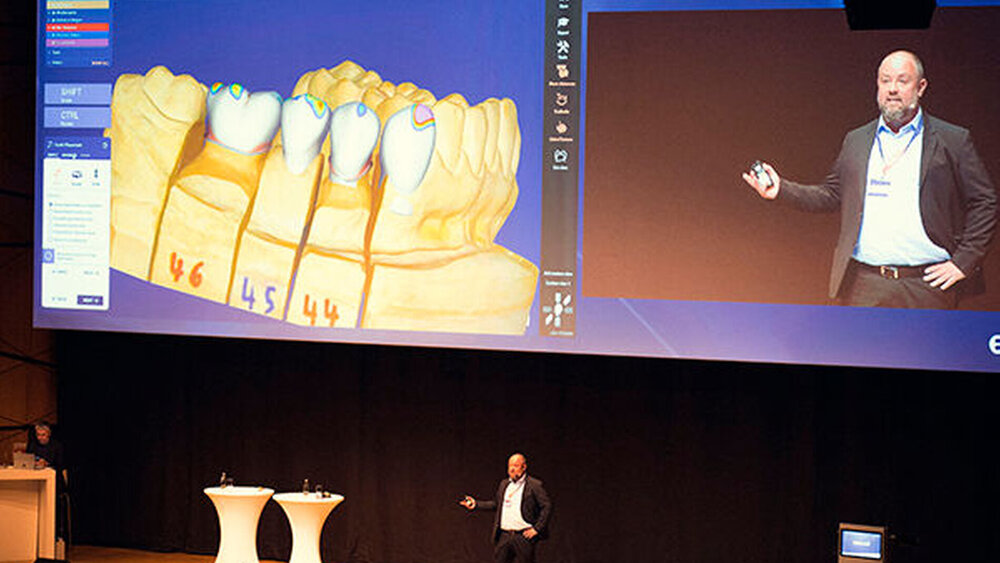 Zum Auftakt erzählte Tillmann Steinbrecher die exocad-Story. Er bezeichnete die Zeit von 2010 bis 2020 als "A decade of digital innovation". Maik Gerth, CTO bei exocad, und er lernten sich bei einem gemeinsamen Forschungs- und Entwicklungsprojekt zu dem Thema „CAD/CAM in der Zahntechnik“ am Fraunhofer Institut IGD in Darmstadt kennen. Ihre Vison war eine einfach zu bedienende CAD-Software für Zahntechniker. 2009 war die erste DentalCAD-Version fertig. 2010 gründeten sie exocad. Heute ist exocad mit über 37.000 Installationen in mehr als 150 Ländern der weltweit führende OEM-Hersteller für dentale CAD-