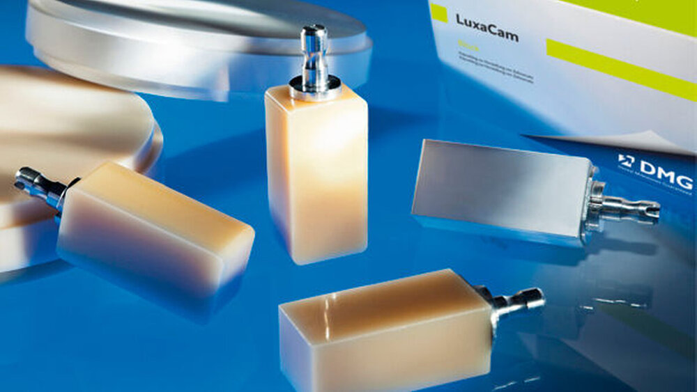 LuxaCam, das sind sechs verschiedenen Materialien für unterschiedlichste prothetische Anforderungen, von ästhetischen Provisorien bis zu hochstabilen komplexen Brückengerüsten. Ob LuxaCam Composite, -PMMA, -PEEK, -Zircon LT, -Zircon HT oder -Zircon HT plus: Die in Hamburg entwickelten Ronden und Blöcke bieten zuverlässig die gewohnt hohe DMG-Qualität.