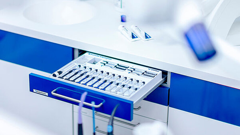 „Wir sind uns bewusst,“ so Racine, „dass hinter jeder Restauration ein kompletter Behandlungsablauf steht, der effizient unterstützt sein will.“ Hinter Ecosite Elements stehe deshalb bewusst mehr als nur das Material. Die praxisgerechte Modul-Zusammenstellung mit passenden Farbschlüsseln gehört ebenso dazu wie ein schnelles Praxisordnungssystem und neue, ergonomisch optimierte Dispenser.