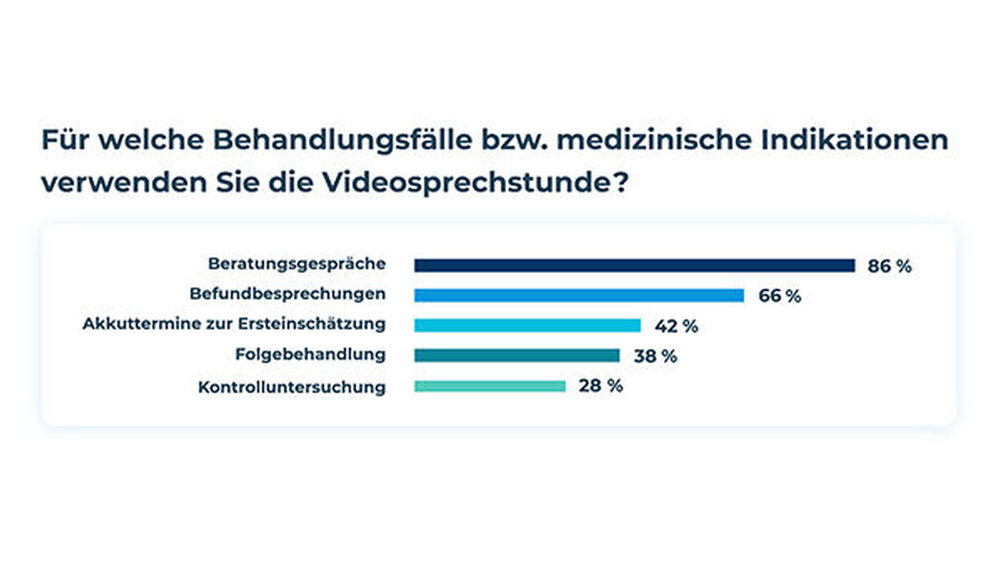 von Doctolib zur Nutzung der Videosprechstunde. Die Teilnehmer nannten vor allem Routinetermine wie Beratungs- (86 %) und Befundgespräche (66 %) als Anlässe für eine Videosprechstunde. Aber auch Akuttermine zur Ersteinschätzung (42 %) lassen sich grundsätzlich per Video durchführen (Abb. 1). In der Praxis funktioniert das für die Befragungsteilnehmer gut – 70 Prozent von ihnen sind (sehr) zufrieden mit der Videosprechstunde. Knapp 80 Prozent der befragten Ärzte sind sich einig: Die Videosprechstunde ist vor allem ein moderner Service für ihre Patienten, auch unabhängig von der Krise. Fast die Hälfte geht sogar noch weiter und ist der Meinung, dass die Videosprechstunde langfristig in jede moderne Praxis gehört. Schließlich ermöglicht dieser Service sowohl den Patienten als auch der Praxis eine gewisse Flexibilität, wie 43 Prozent der Befragten finden.