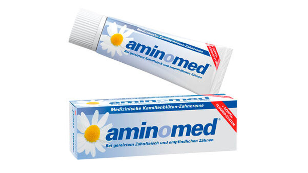 Aufgrund ihrer Sanftheit (RDA Wert: 50) reinigt Aminomed auch freiliegende Zahnhälse so schonend wie effizient und ist auch für die Reinigung sensitiver Zähne geeignet. Ihr spezielles Doppel-Fluorid-System besteht aus Aminfluorid und Natriumfluorid. Beide Fluoride sind in Aminomed optimal bioverfügbar2. Xylitol unterstützt aufgrund seiner anti-kariogenen Wirkung3,4gegen Karies.