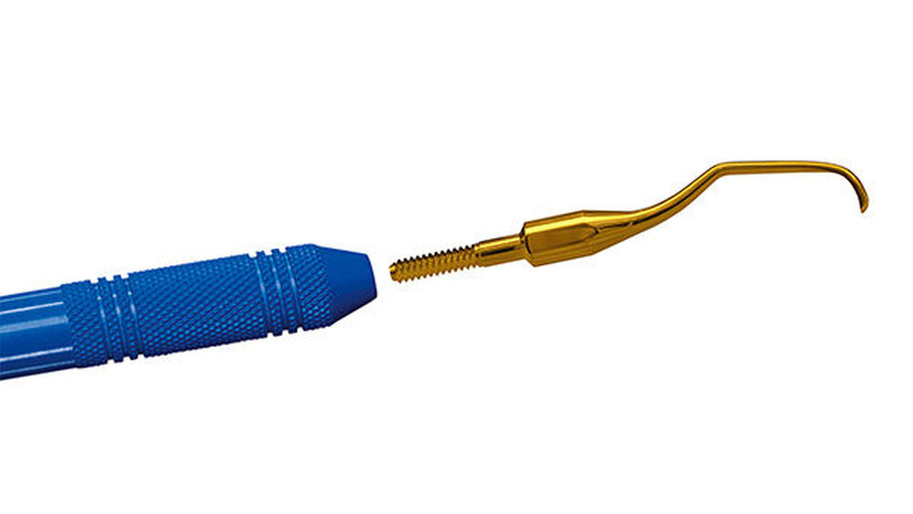 Die Handgriffe gibt es in drei Varianten und sieben Farben. Daher können zahlreiche individuelle Modelle realisiert werden und die Identifikation etwa nach Anwender oder Behandlungsraum wird erleichtert. Der zugehörige Schraubschlüssel ermöglicht die schnelle, komfortable Auswechslung der Quik-Tip Spitzen. Diese sind für Scaler, Küretten sowie Gracey-Küretten erhältlich, wahlweise in der Ausführung mit Talon Tough Edelstahl oder mit XP-Technologie. Diese Legierung macht die Arbeitsenden extrem hart und widerstandsfähig. Sie behalten ihre scharfen Schneidekanten, sind stets einsatzbereit, müssen nicht nachgeschliffen werden und der Behandler ermüdet nicht mehr vorzeitig durch den anstrengenden Gebrauch abgestumpfter Klingen.