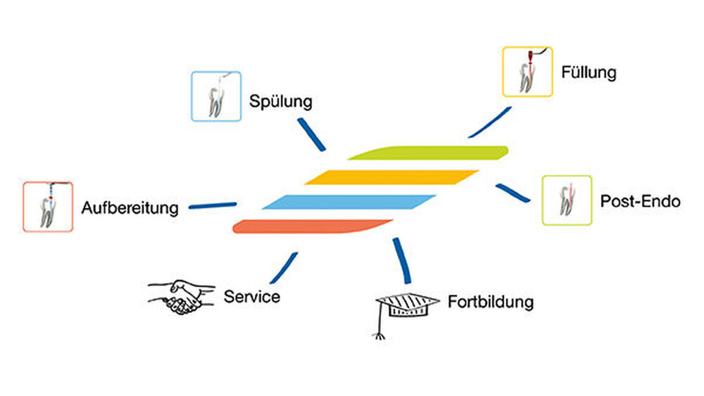 Gerade in solch herausfordernden medizinischen Situationen reicht es nicht aus, sich nur auf einzelne, voneinander losgelöste Produkte für den endodontischen Behandlungsablauf zu verlassen. Denn nur wenn die einzelnen Komponenten in allen Behandlungsschritten zusammenspielen, sind Behandlungserfolg und damit zufriedene Patienten garantiert. Das Endo-System von VDW bietet daher einen gesamthaften Ansatz von verschiedenen Produkten – von der Wurzelkanalaufbereitung über Spülung und Füllung bis zur postendodontischen Versorgung - und Services aus einer Hand. Für Ergebnisse, die einfach, sicher, effizient und vorhersehbar sind, mit mehr Gelassenheit für alle Beteiligten inklusive.