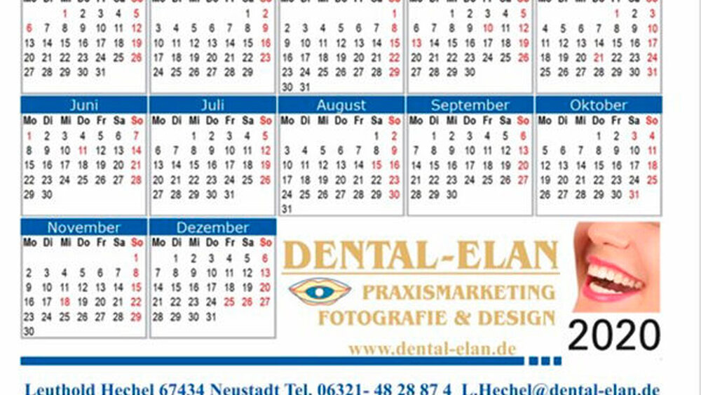 Die Fotokalender von Dental-Elan für das kommenden Jahr bieten hochwertige Qualität und sind als Auslage an der Rezeption, als Recall-Briefbeilage oder direkt bei der Terminvergabe optimal geeignet.