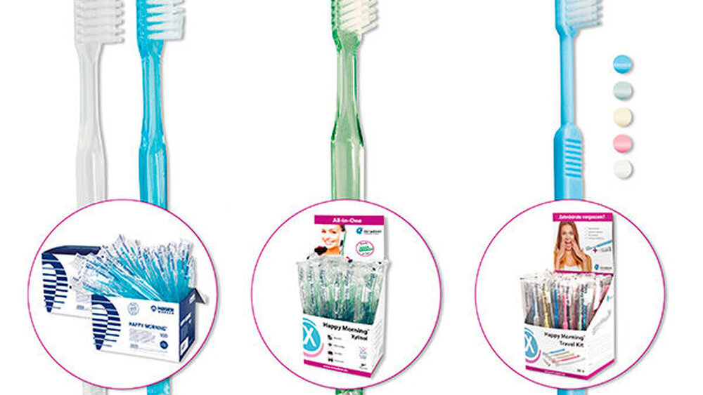 Die selbstschäumende Eigenschaft der Zahnpasta-Imprägnierung sorgt für sofortige Einsatzbereitschaft, da kein zusätzliches Wasser benötigt wird. Dadurch ist die Happy Morning ideal für zwischendurch, zum Zähneputzen in der Zahnarztpraxis vor der Behandlung und auf Kurzreisen. Die Zahnbürsten sind hygienisch einzeln verpackt, sowie mit und ohne Zahnpasta erhältlich.