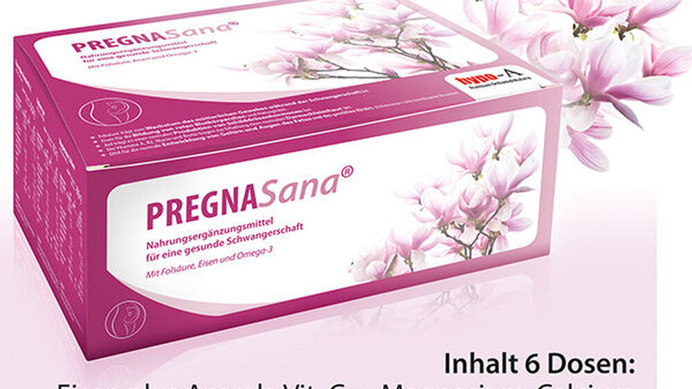 Die Präparate-Kombination PREGNASana enthält Folsäure plus sieben weitere B-Vitamine, Eisen mit Vitamin C, Jod in Kombination mit Kalium, Omega-3-Fettsäuren (DHA/EPA), Vitamin A als Provitamin (Beta-Carotin), eine Magnesium-Calcium-Kombination und Zink – jeweils in definierten, sicheren Nährstoffmengen. Damit ist die Supplementierung mit den relevanten Nährstoffen sichergestellt, die bspw. von der Deutschen Gesellschaft für Ernährung DGE angeraten werden, um Zellteilung, Gehirnentwicklung, Blutbildung und Sauerstofftransport beim Fötus zu unterstützen.